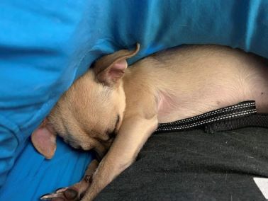 Nick, Sally and DarlaWe adopted Darla from Teller County Animal Shelter in Divide Colorado on Dec 30th, 2020, when she was 4 months old. The only information they could provide was an approximate birth date and that she had recently been transferred to them from a rescue in New Mexico. We've had her for almost 4 months now. Hubby had stopped in to request a small lap dog for me as a comfort animal. I have MS, and I'm wheelchair bound. It's a long story, but I don't get out much. So,we arranged an appointment to meet her and fell in love the moment her foster mom brought her in. Then, as we were filling out the adoption forms, two calls came inquiring about her! When we brought her home, she was a little under weight but she's gained 2 lbs since then. She's with a family that loves her now. She sleeps in our bed, plays with our cat, and has a ton of puppy toys and chewies. When she isn't playing, she's asleep in my lap or watching the traffic outside our front window. She's brought a lot of joy to our lives. Thanks so much for rescuing her. ![]() ![]() ![]()